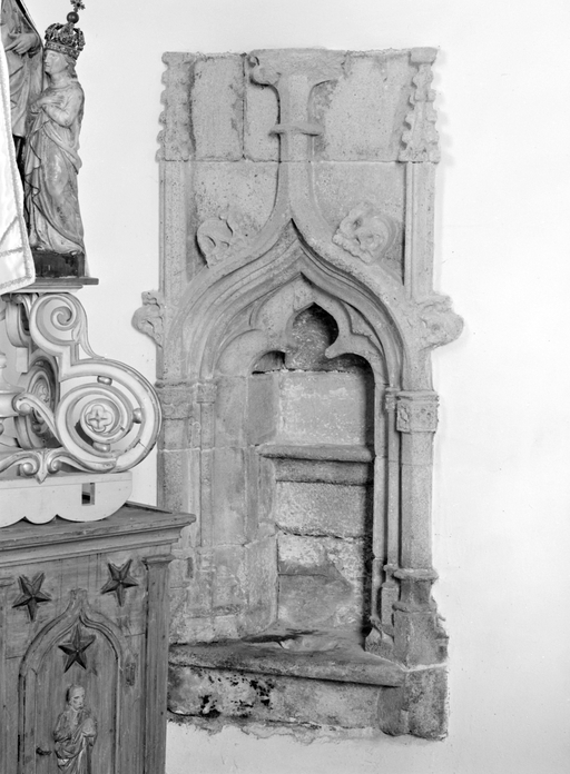 Intérieur, choeur, détail niche et crédence.Immatriculation