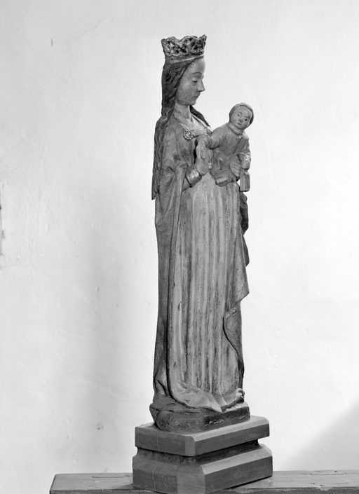 Statuette de Vierge à l'Enfant, vue de trois-quarts.Immatriculation