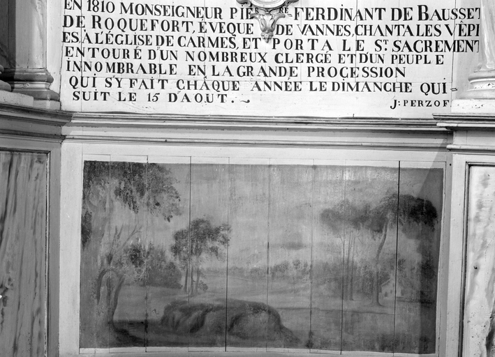 Maître-autel et retable, retable aile nord, inscription et lambris peint.Immatriculation