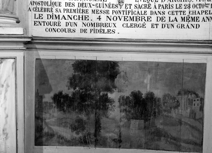 Maître-autel et retable, retable, aile sud : inscription et lambris peint.Immatriculation
