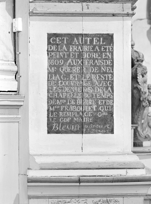 Autel-retable n°1, inscription, piédestal nord, détail inscription.Immatriculation