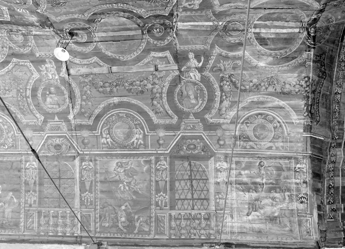 Ensemble de peintures de plafond A, nef nord, partie centrale : vue générale.Immatriculation