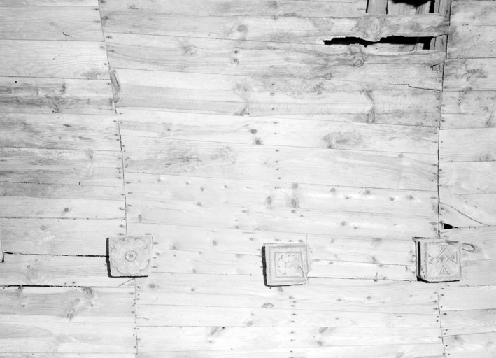 Ensemble de reliefs, clés de la nef n°1.Immatriculation