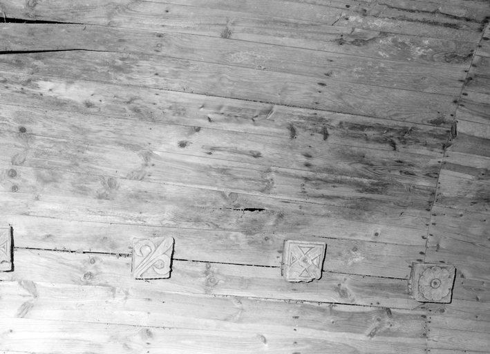 Ensemble de reliefs, clés de la nef n°2.Immatriculation