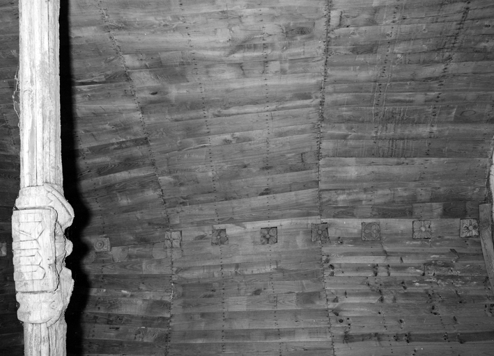 Ensemble de demi-reliefs, bras nord, charpente, clés sculptées.Immatriculation