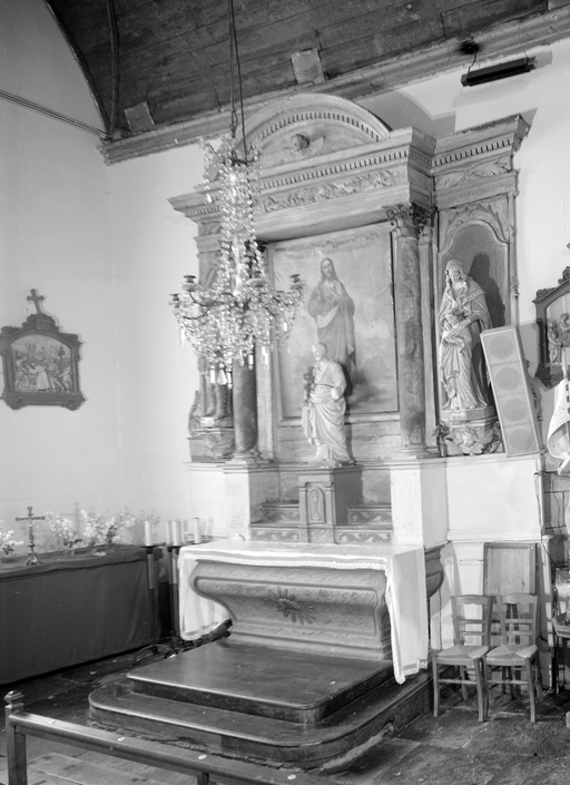 Autels (2), retables (2), tabernacles (2), gradins d'autel (4), tableaux (2), (autel secondaire, en pendant, autel tombeau, retable architecturé) : du Rosaire, du Sacré-Coeur, église paroissiale Saint-Pierre (Silfiac),