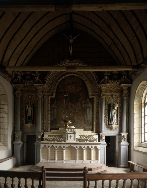 Autel, retable, tabernacle, gradins d'autel (2), (maître-autel, autel tombeau, retable architecturé), chapelle Saint-Samson (Neulliac),