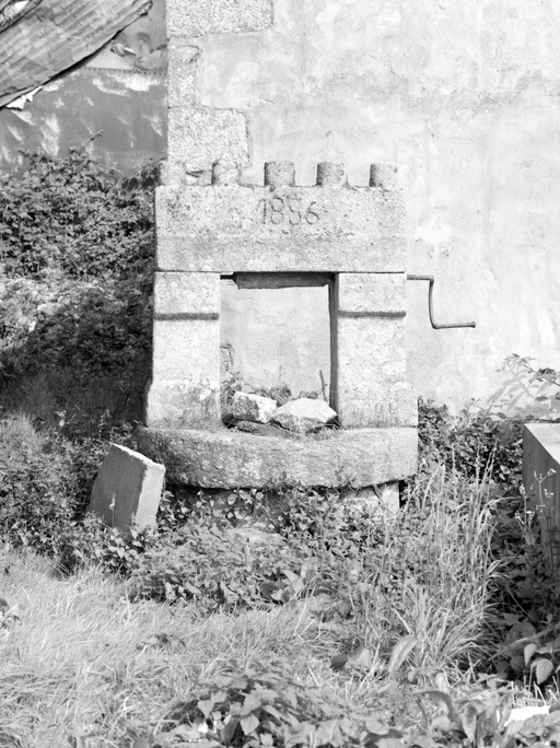 Puits, 20 rue de Guern, détail du puits daté de 1886.Immatriculation