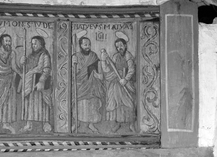 Tribune : les apôtres, chapelle Saint-Gildas (Malguénac),