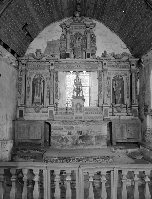 Autel, retable, tabernacle, gradins d'autel (3), (maître-autel, autel tombeau, retable architecturé), chapelle Saint-Patern (Malguénac),