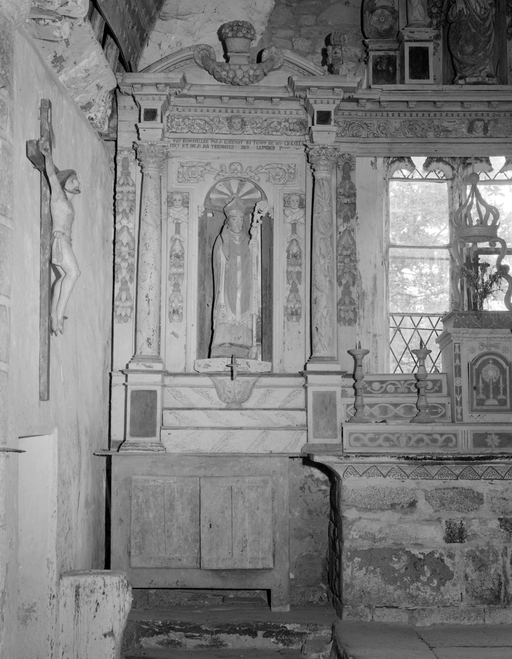 Autel, retable, tabernacle, gradins d'autel (3), (maître-autel, autel tombeau, retable architecturé), chapelle Saint-Patern (Malguénac),