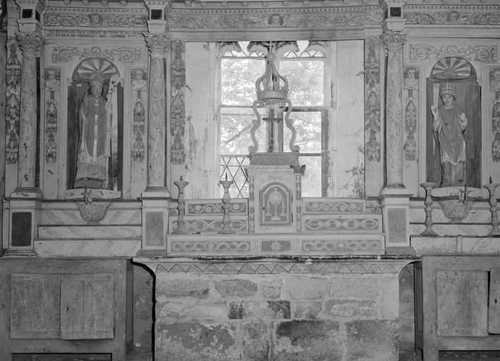 Maître-autel et retable, autel et niches latérales.Immatriculation