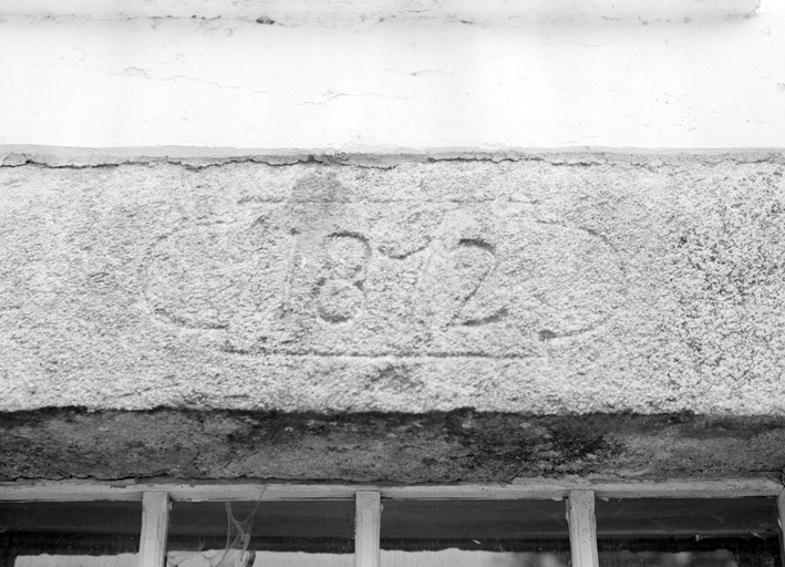 Maison n°2, porte : détail du linteau daté 1872.Immatriculation
