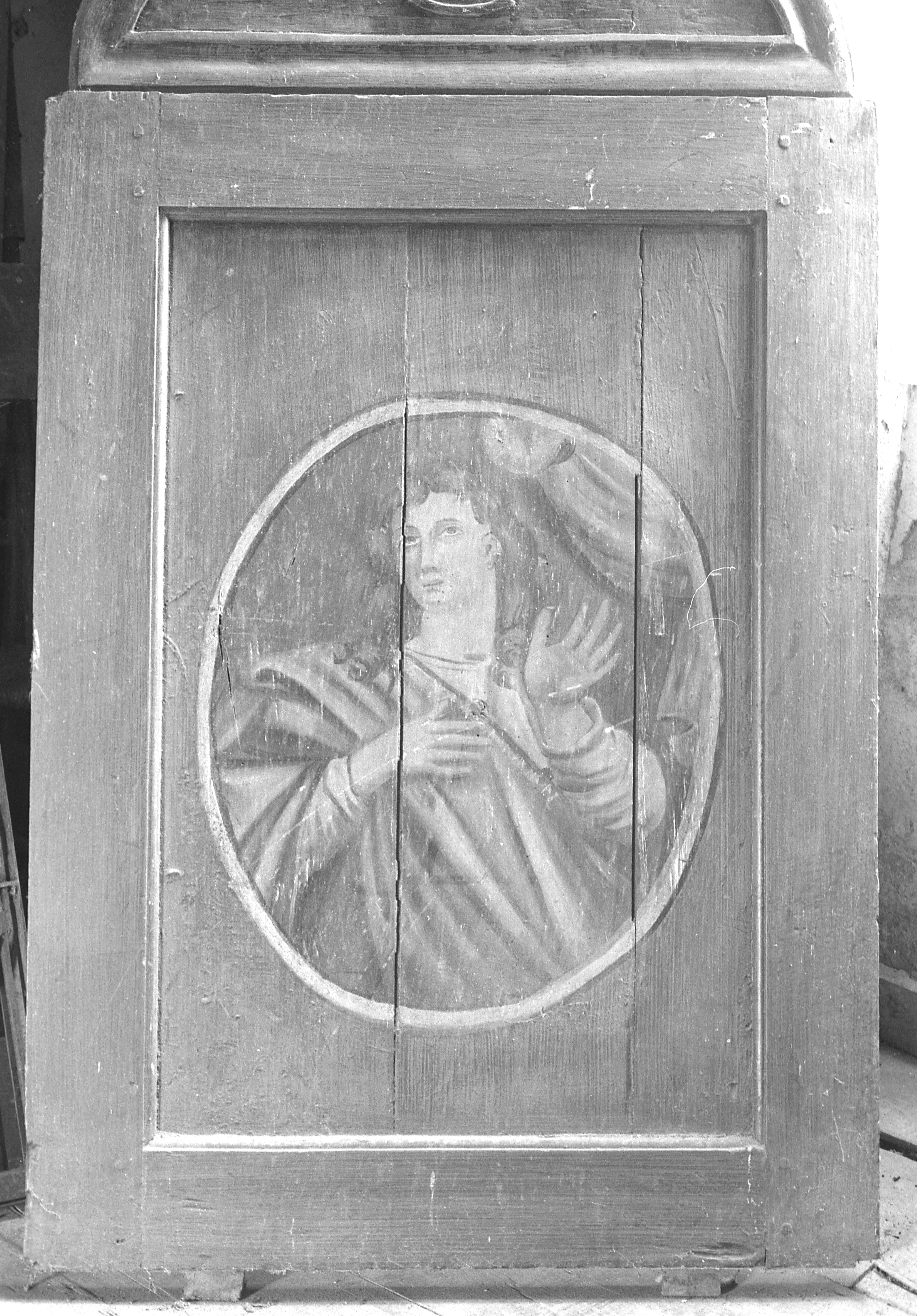 Chaire à prêcher, dorsal : peinture qui représente saint Jean (état en 1983)Immatriculation