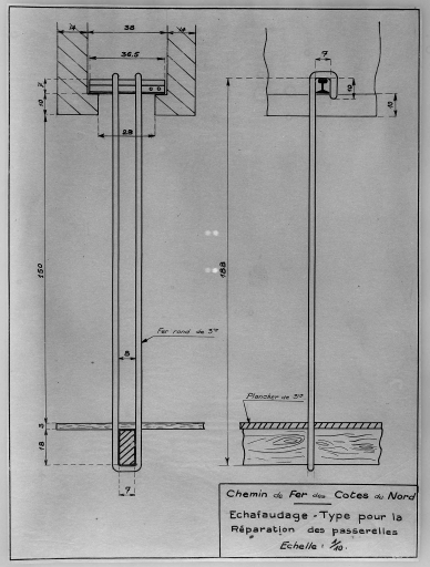 Ligne Saint-Brieuc à Paimpol et Tréguier : échafaudage type pour la réparation des passerelles.Immatriculation