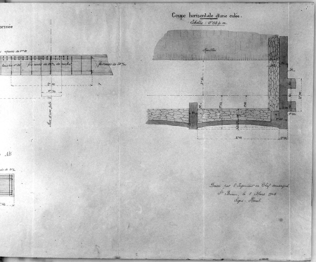 Ligne Tréguier - Lannion : passerelle sur la côte de Plouguiel, coupe longitudinale d'une culée.Immatriculation