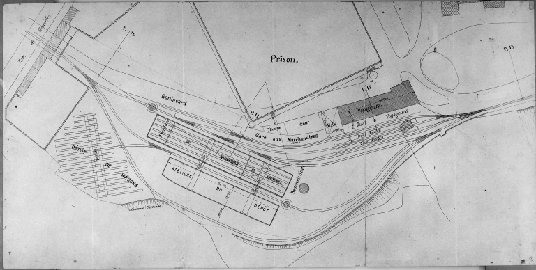 Station de Saint-Brieuc : plan général de la gare centrale.Immatriculation