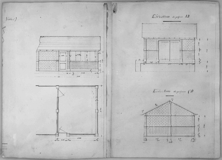 Station de Pontrieux : élévation du pignon AB, élévation du pignon CD.Immatriculation