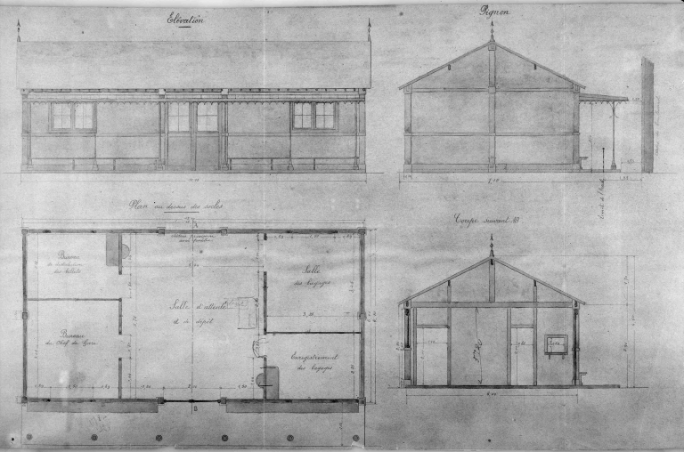 Station de Saint-Brieuc : élévations des bâtiments des voyageurs.Immatriculation