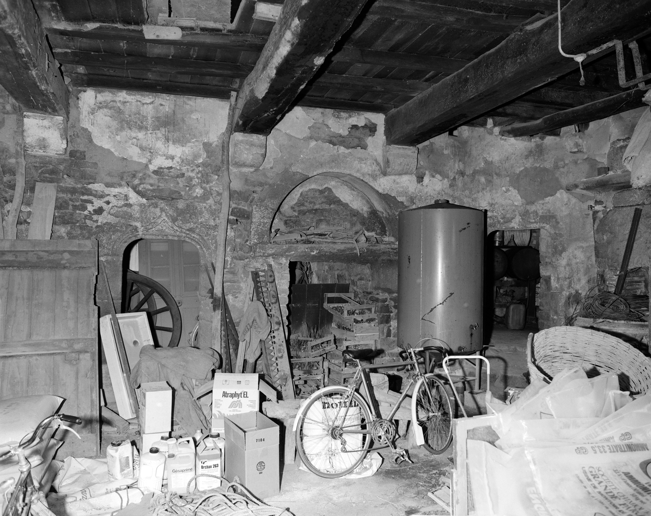 Rez-de-chaussée, pièce est (cuisine), mur nord. Ouvertures donnant sur un couloir de circulation. (1984)Immatriculation