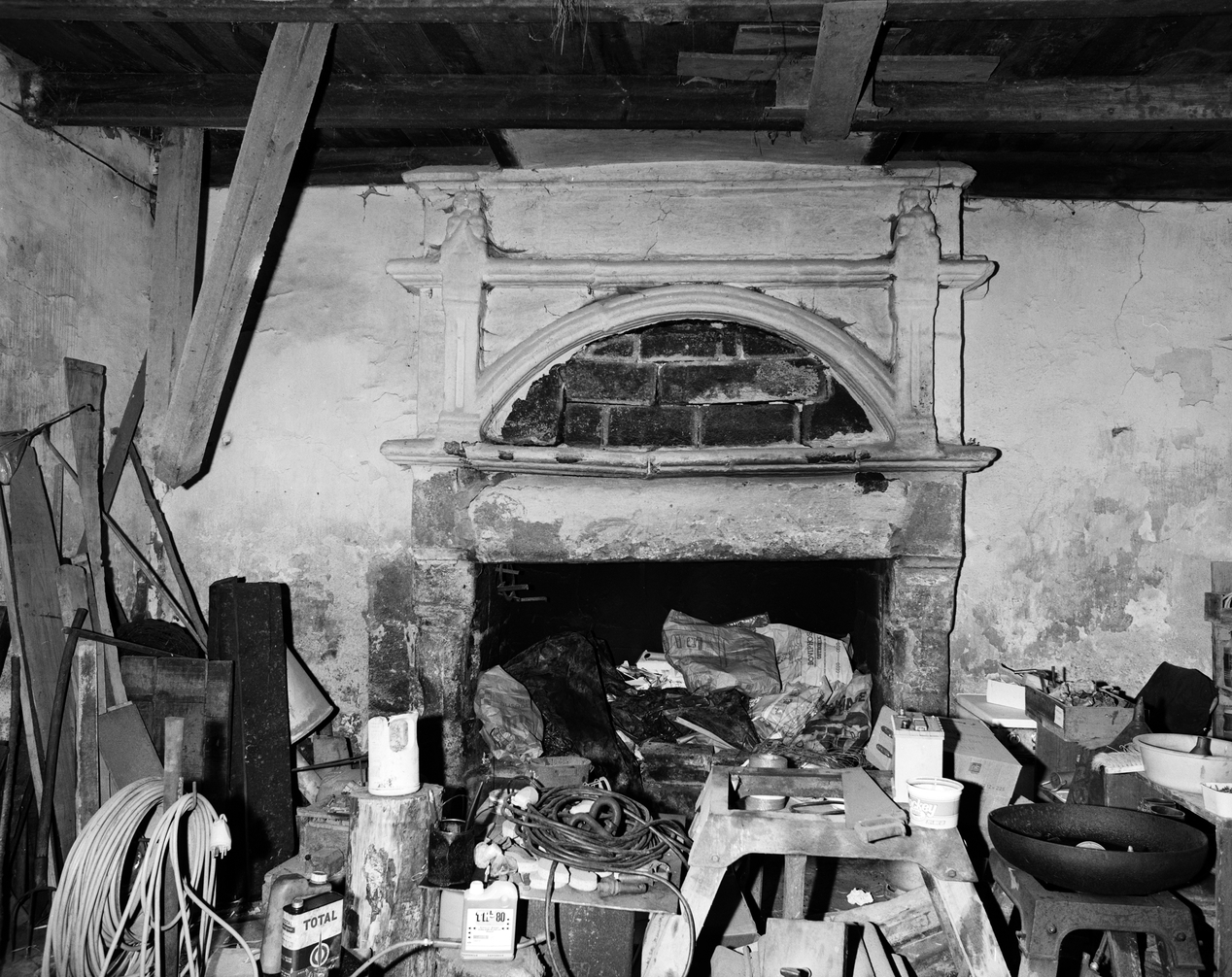 Rez-de-chaussée, pièce ouest (séjour), pignon ouest, détail de la cheminée. (1984)Immatriculation