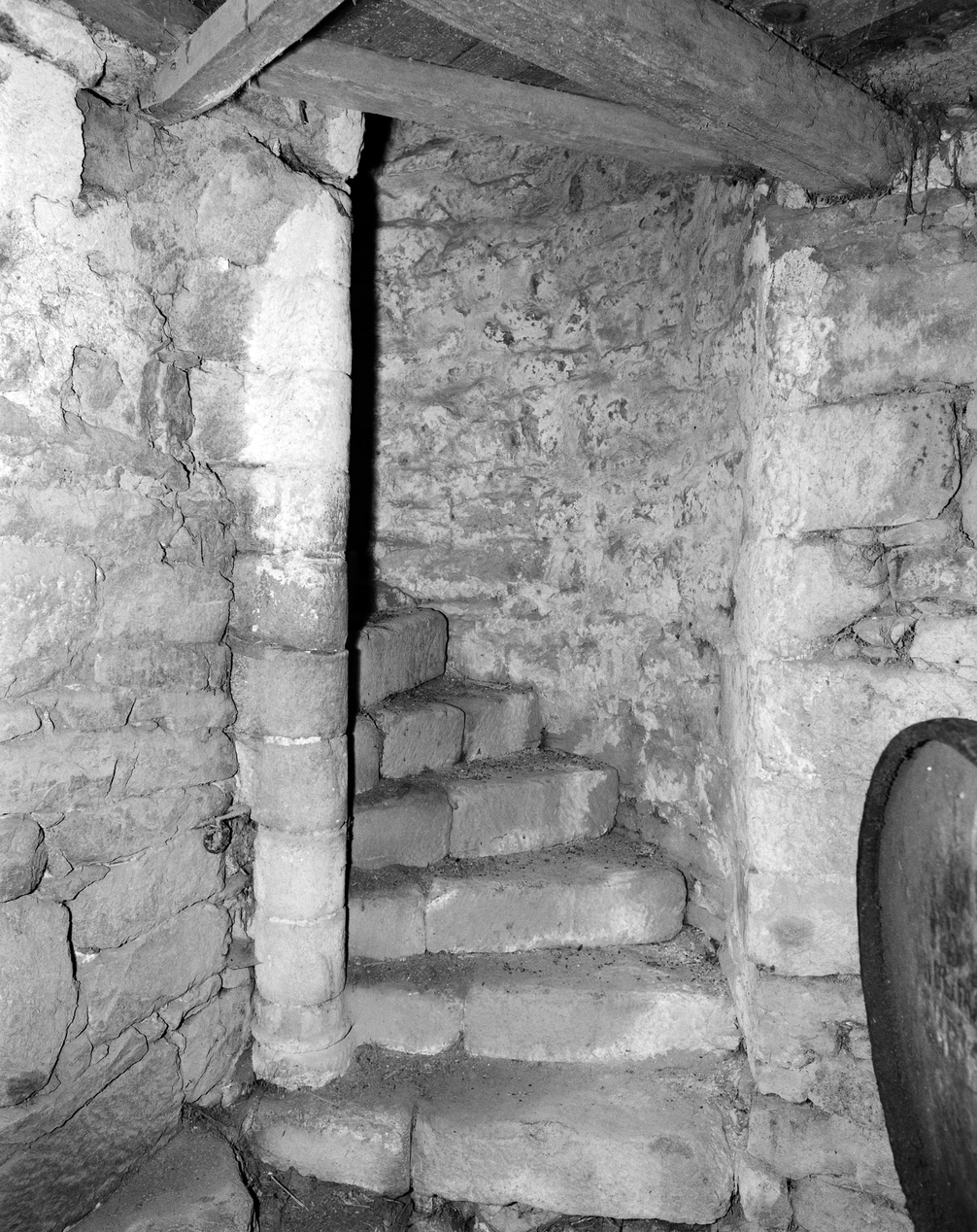 Tourelle nord-est, détail de l'escalier à vis. (1984)Immatriculation