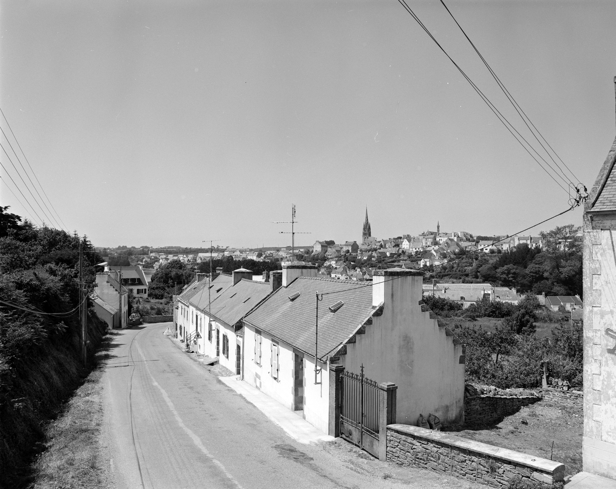 Vue de situation vers le nord-ouest. Ville de Pont-Croix en arrière plan. (1984)Immatriculation