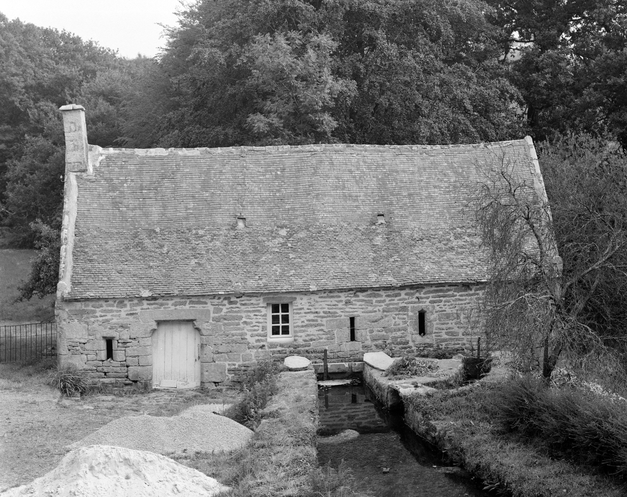 Vue générale prise du sud (moulin et bief). (1984)Immatriculation