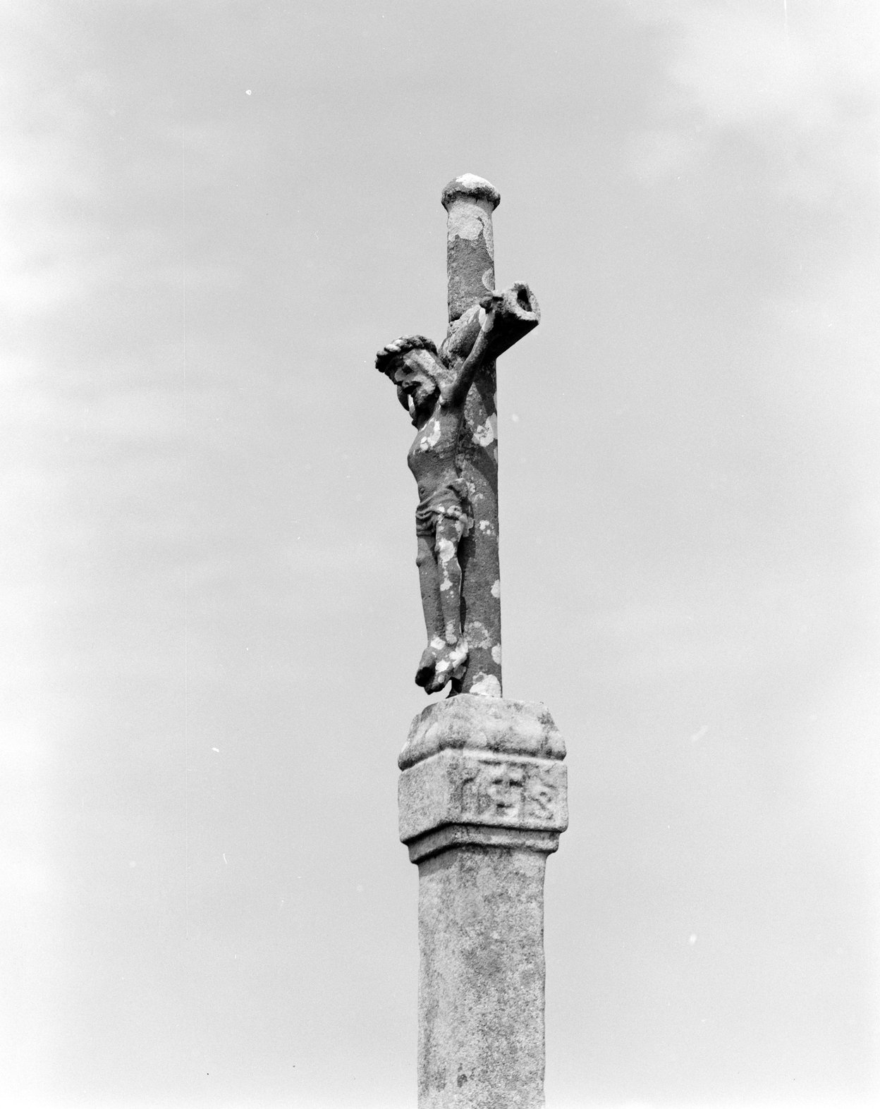 Croisillon, vue générale sud-ouest, Christ en croix et inscription "IHS". (1984)Immatriculation