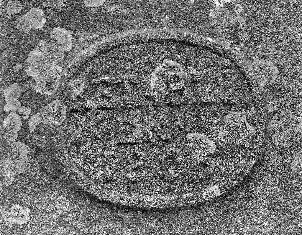 Entrée ouest, pilier gauche, détail inscriptionImmatriculation