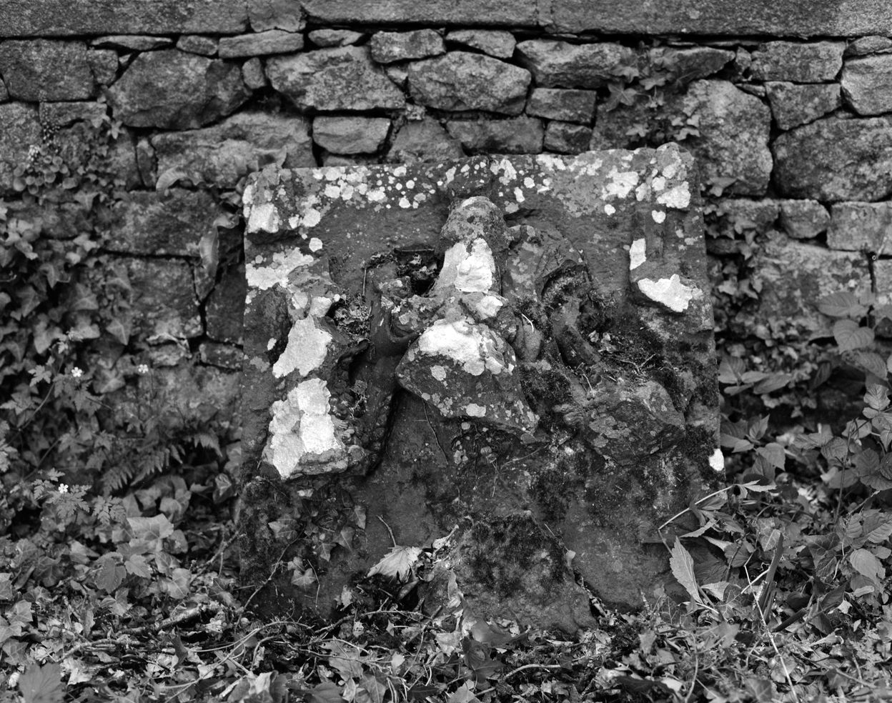 Vue des armoiries situées au pied de la fenêtre gothique de la chapelle du parc du château de Kernevez à Saint-Pol-de-LéonImmatriculation