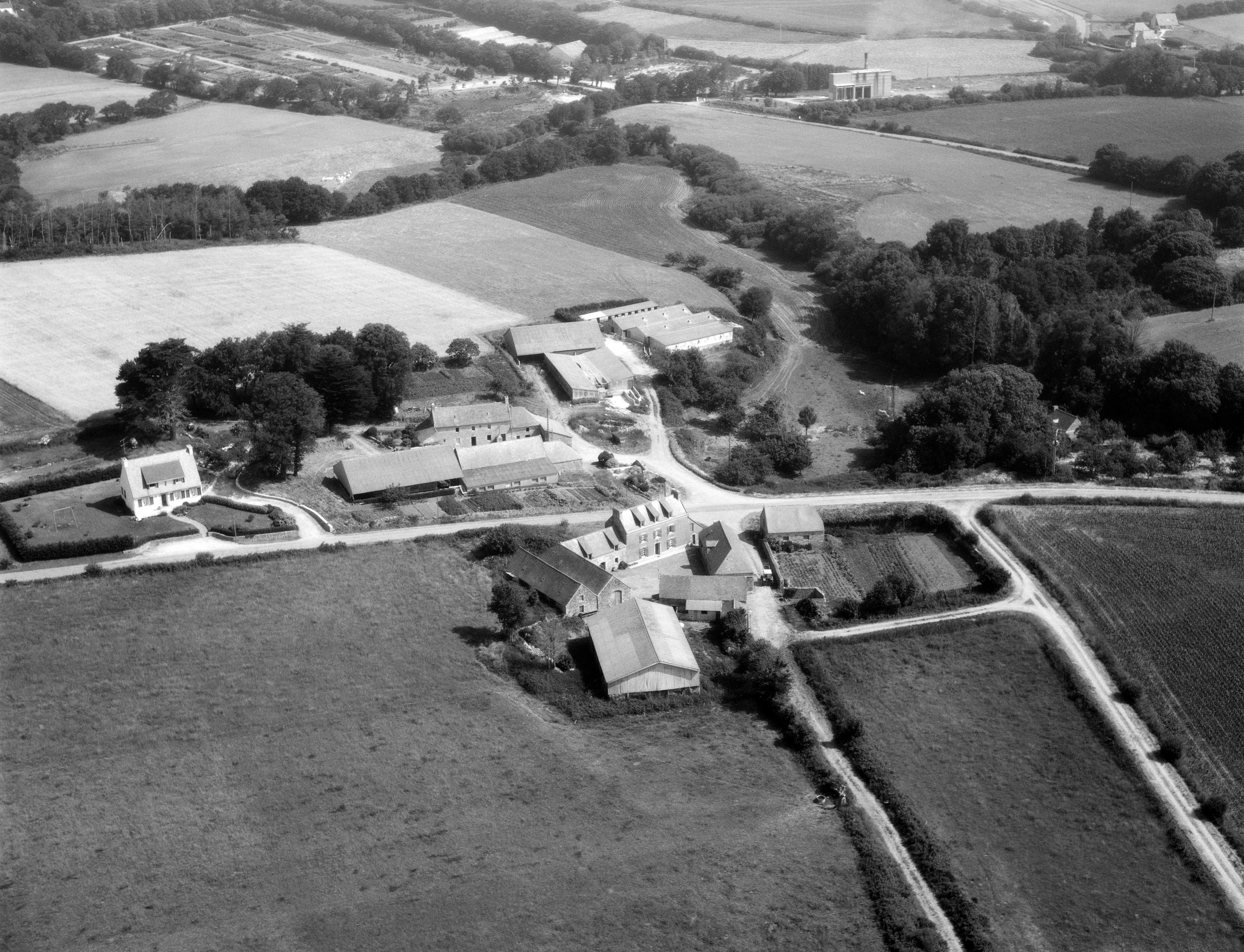 Vue aérienne sud du village de Lesmeilars. (1984)Immatriculation