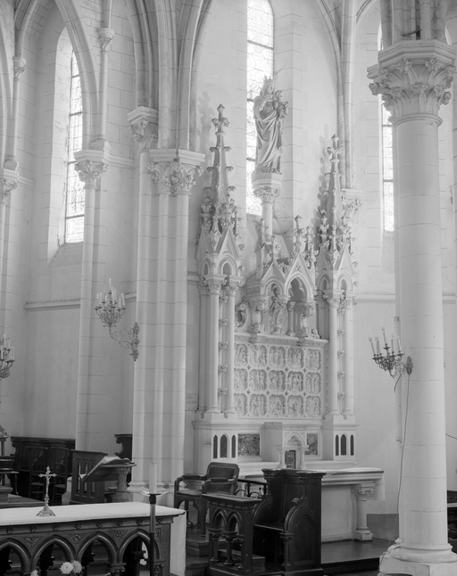 Autel, tabernacle, retable, statue (retable cadre, retable architecture, autel secondaire) : Donation du Rosaire, Vierge à l'Enfant, du Rosaire, église paroissiale Notre-Dame (Pocé-les-Bois),