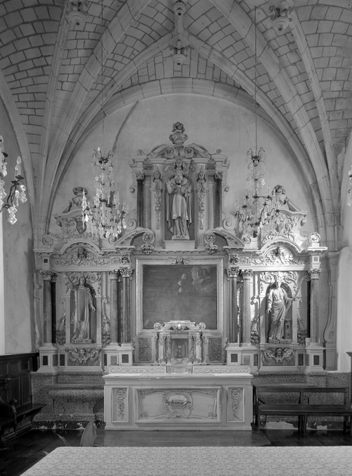 Autel, retable, tabernacle (maître-autel, retable architecturé à niche), église paroissiale Saint-Melaine (Cornillé),
