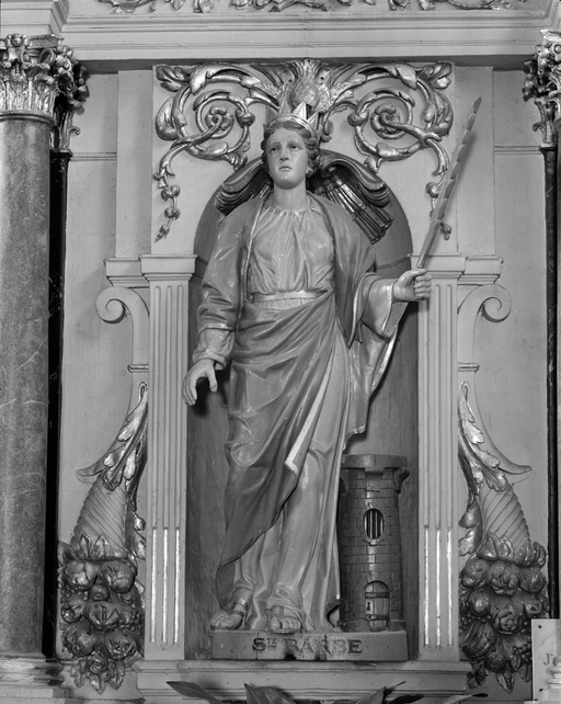 Statues (3) (petite nature) : Saint Melaine, Saint Laurent, Sainte Barbe, église paroissiale Saint-Melaine (Cornillé),