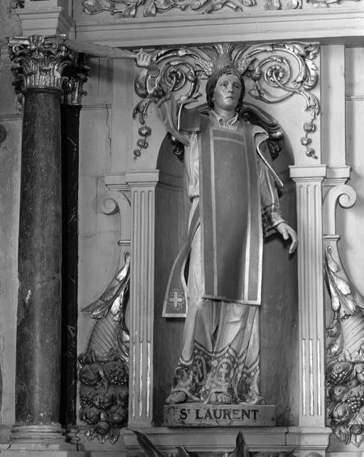 Statues (3) (petite nature) : Saint Melaine, Saint Laurent, Sainte Barbe, église paroissiale Saint-Melaine (Cornillé),