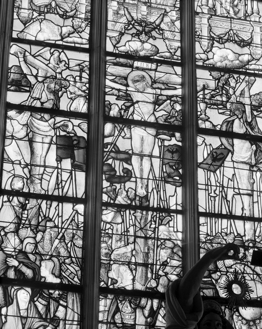 Le Crucifiement, mort de Marie Madeleine, Trinité (baie n°0) : Détail Christ en croix.Immatriculation