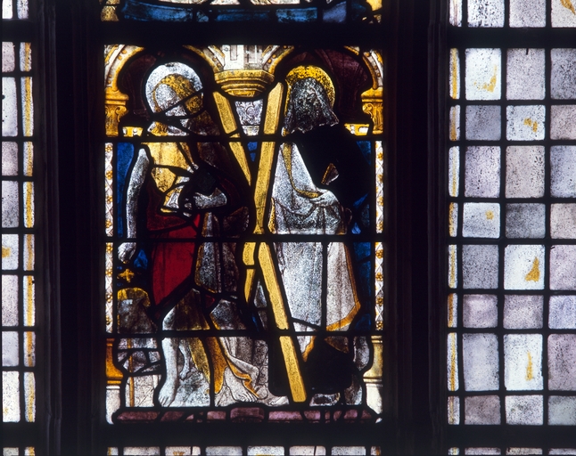 Verrière (verrière hagiographique) (baie 3), ancienne collégiale, actuellement église Sainte-Marie-Madeleine (Champeaux),
