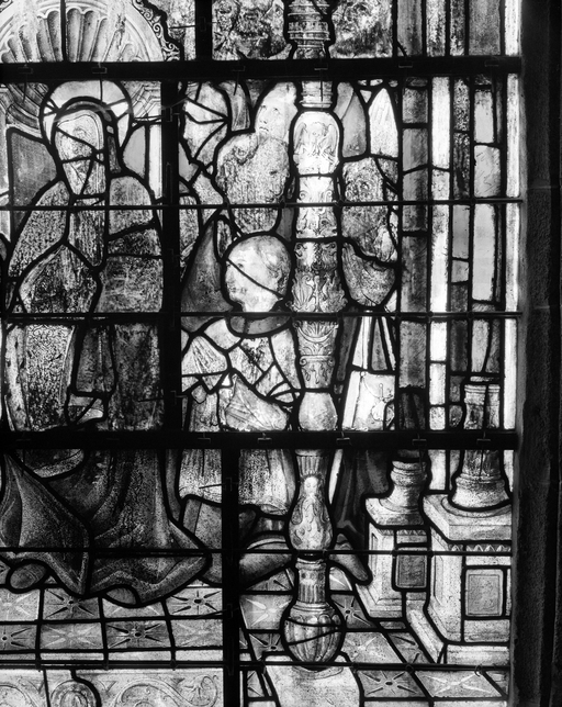 Verrière (verrière figurée) : Pentecôte (baie 8), ancienne collégiale, actuellement église Sainte-Marie-Madeleine (Champeaux),