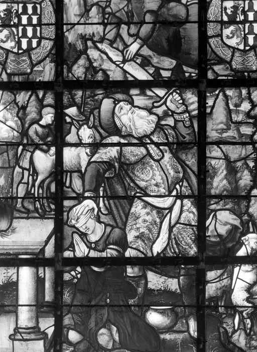Verrière (verrière à personnages) : sacrifice d'abraham (baie 2), ancienne collégiale, actuellement église Sainte-Marie-Madeleine (Champeaux),