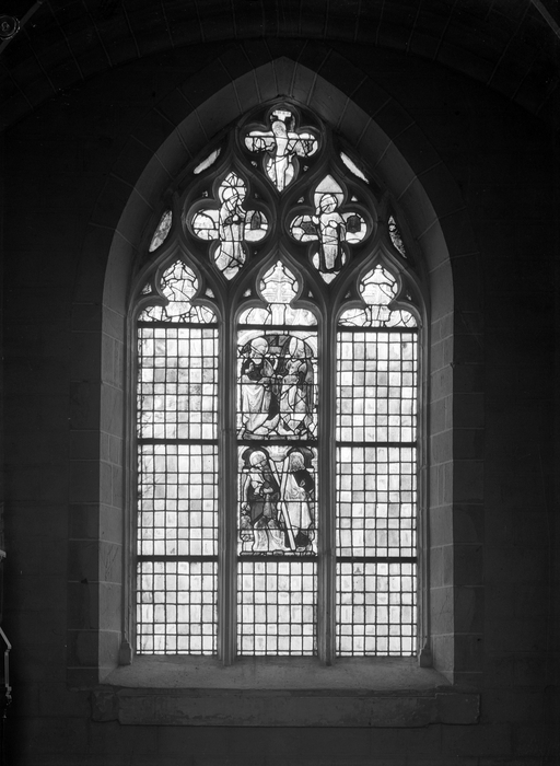 Verrière (verrière hagiographique) (baie 3), ancienne collégiale, actuellement église Sainte-Marie-Madeleine (Champeaux),