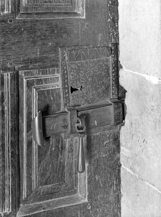 Porte de la sacristie, détail serrure à loquet.Immatriculation