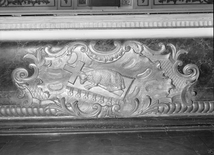 Détail du motif central de l'antépendium.Immatriculation