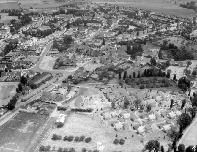 Le bourg, vue aérienne vers le sud est.Immatriculation
