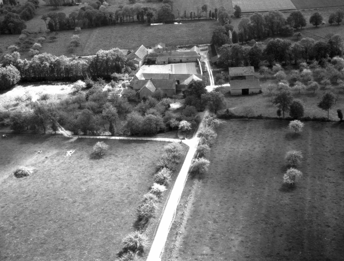 Vue aérienne ; manoir au 1er planImmatriculation