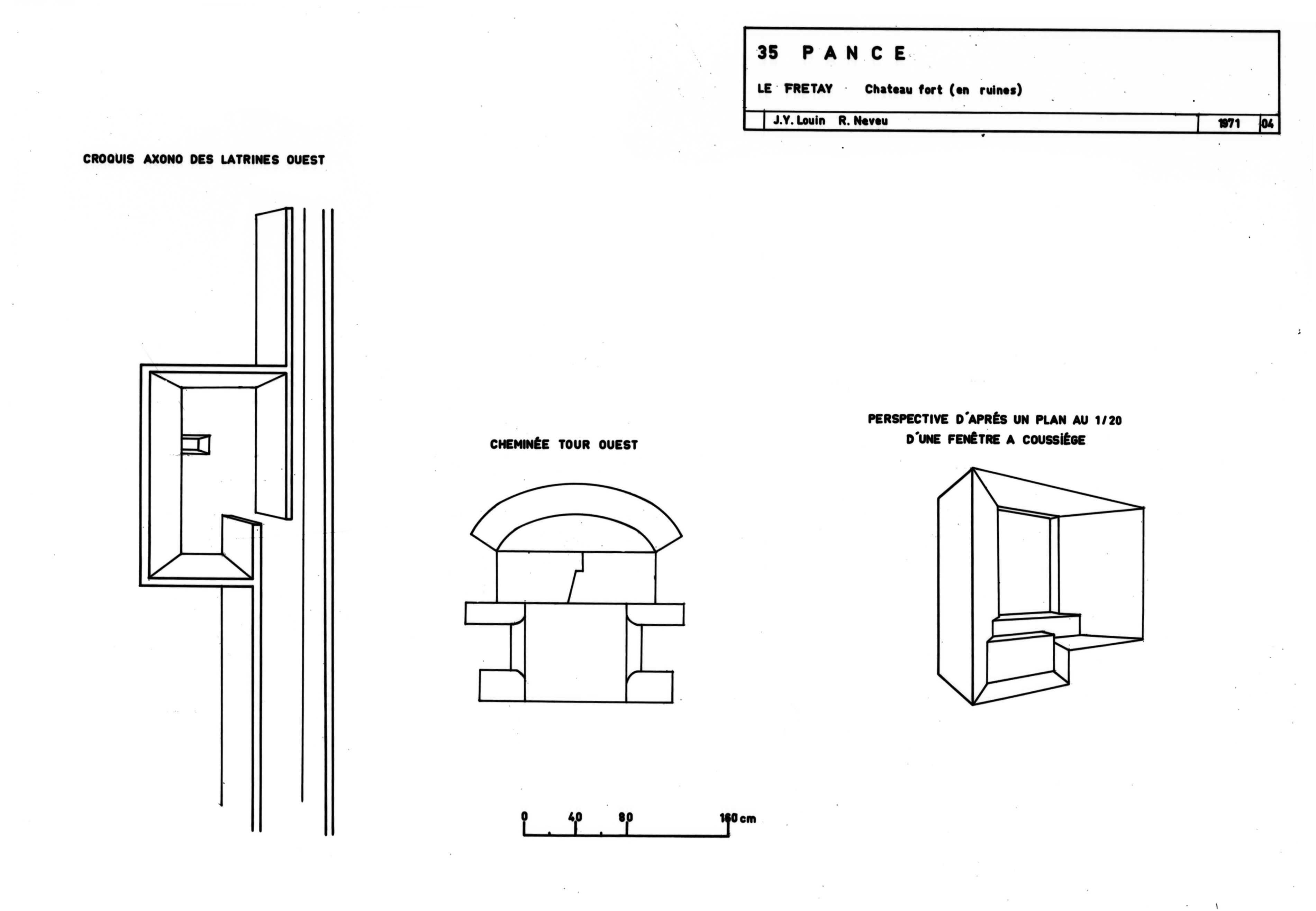 Croquis des latrines, cheminée et fenêtre à coussiège.Immatriculation