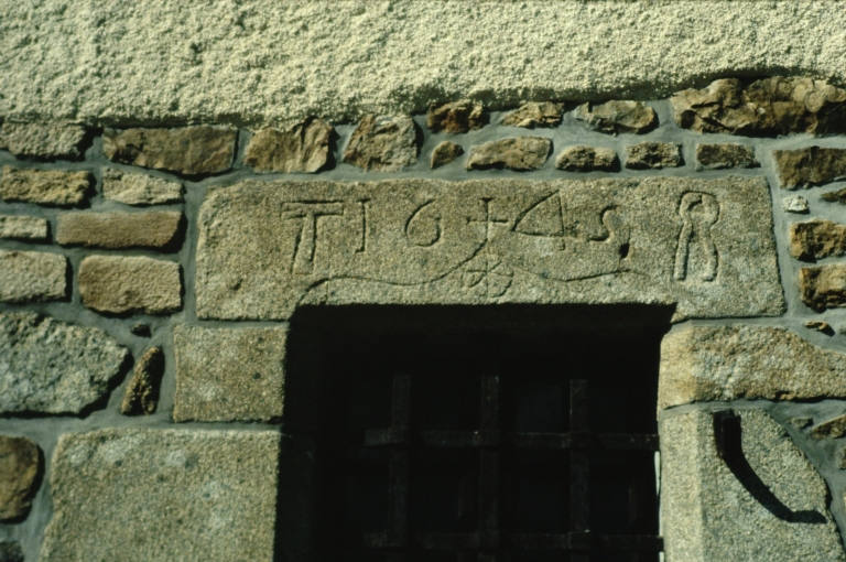 La Jeunetairie - Ferme, linteau avec marques d'artisans.Immatriculation