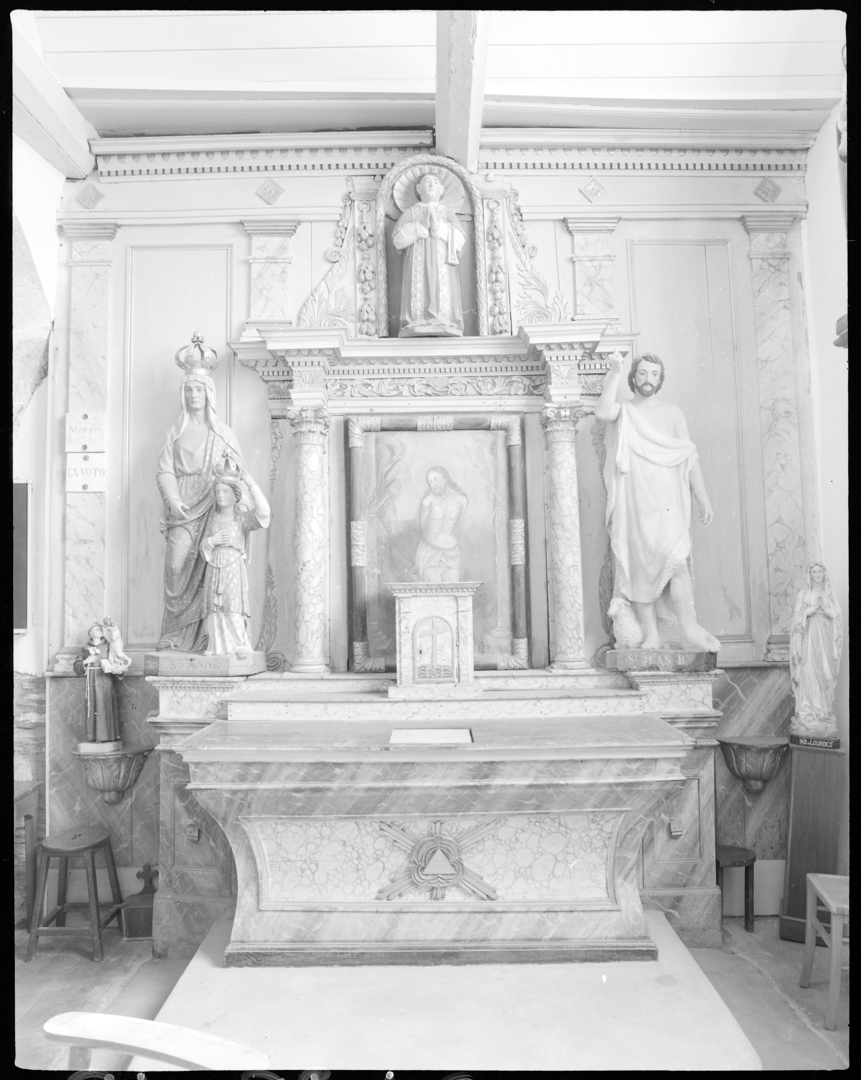 Ensemble de l'autel secondaire sud : autel, retable, tabernacle, gradin d'autel, église Saint-Étienne (Saint-Abraham),
