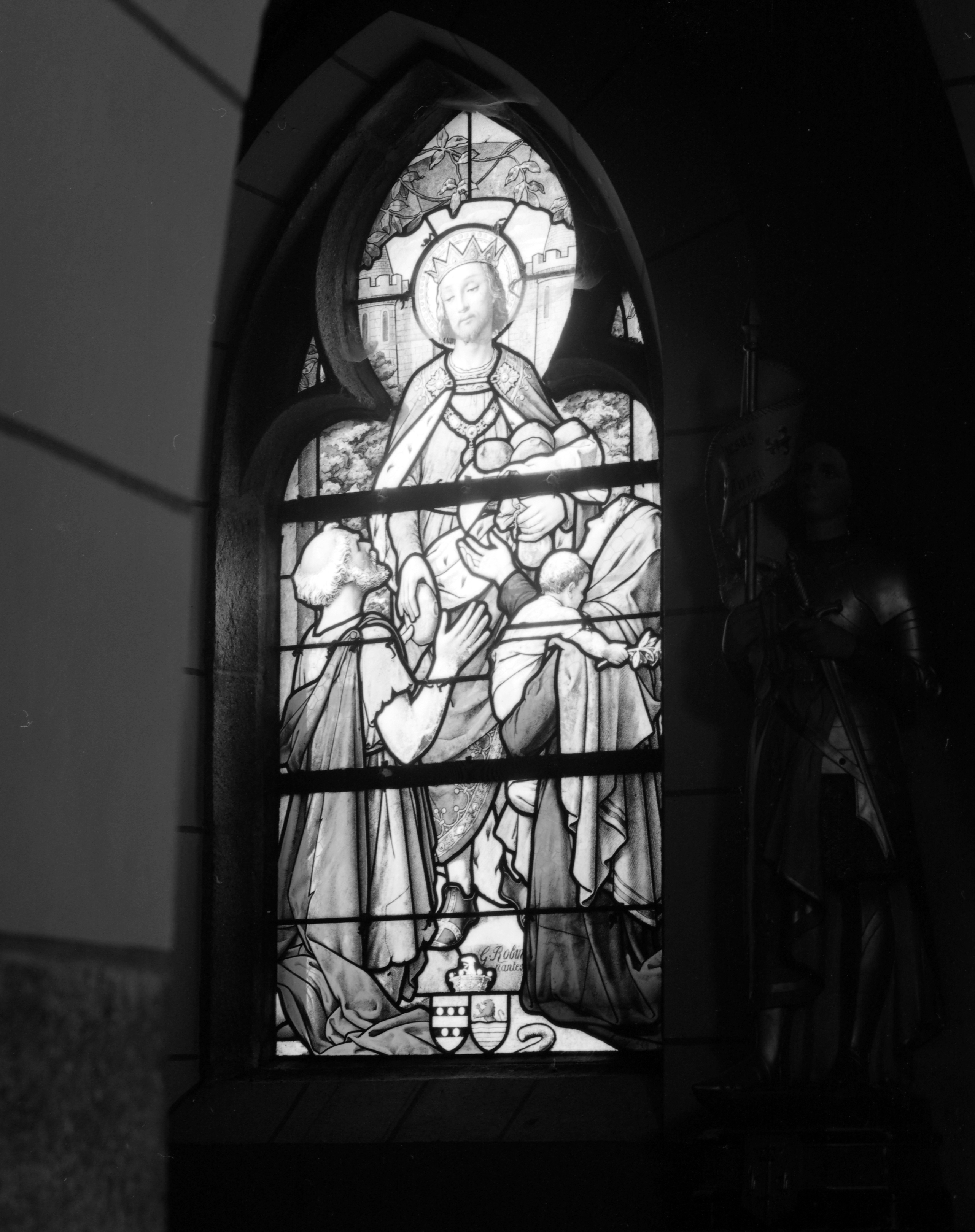 Verrière de la baie 5 : Charité de saint Louis ? (état en 1984)Immatriculation