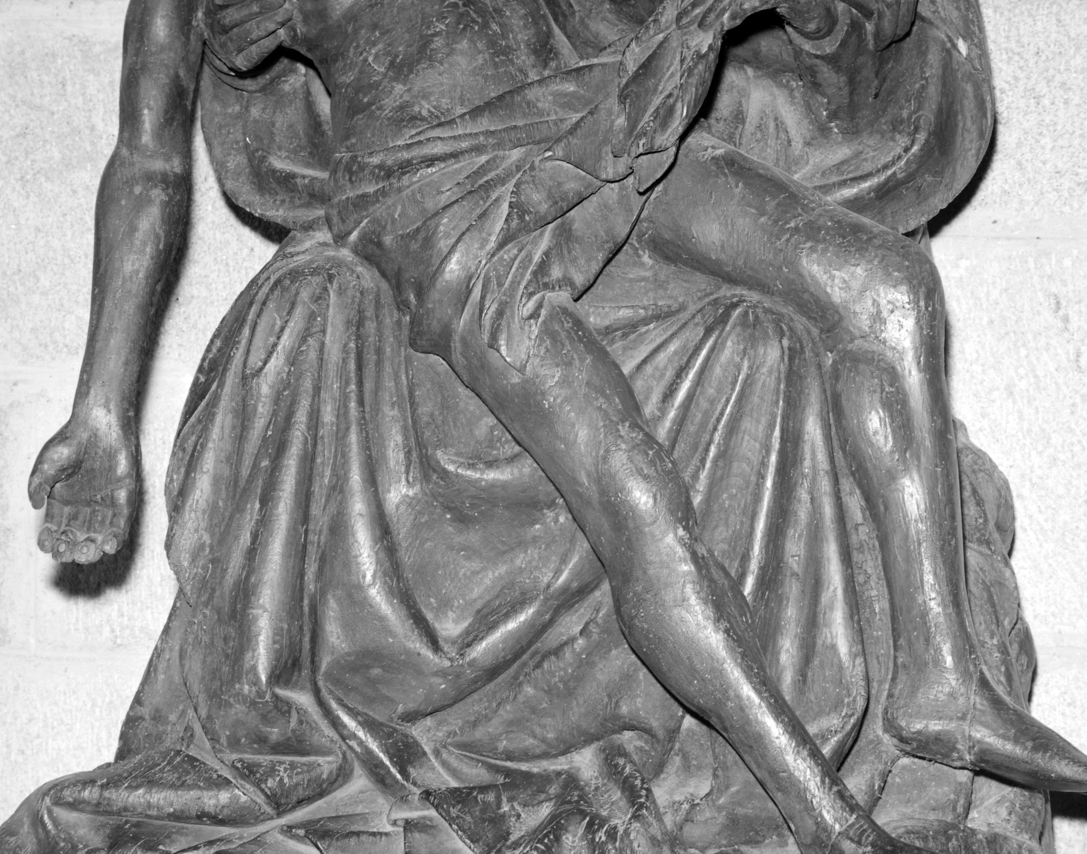 Groupe sculpté, Vierge de Pitié : robe de la Vierge (état en 1984)Immatriculation
